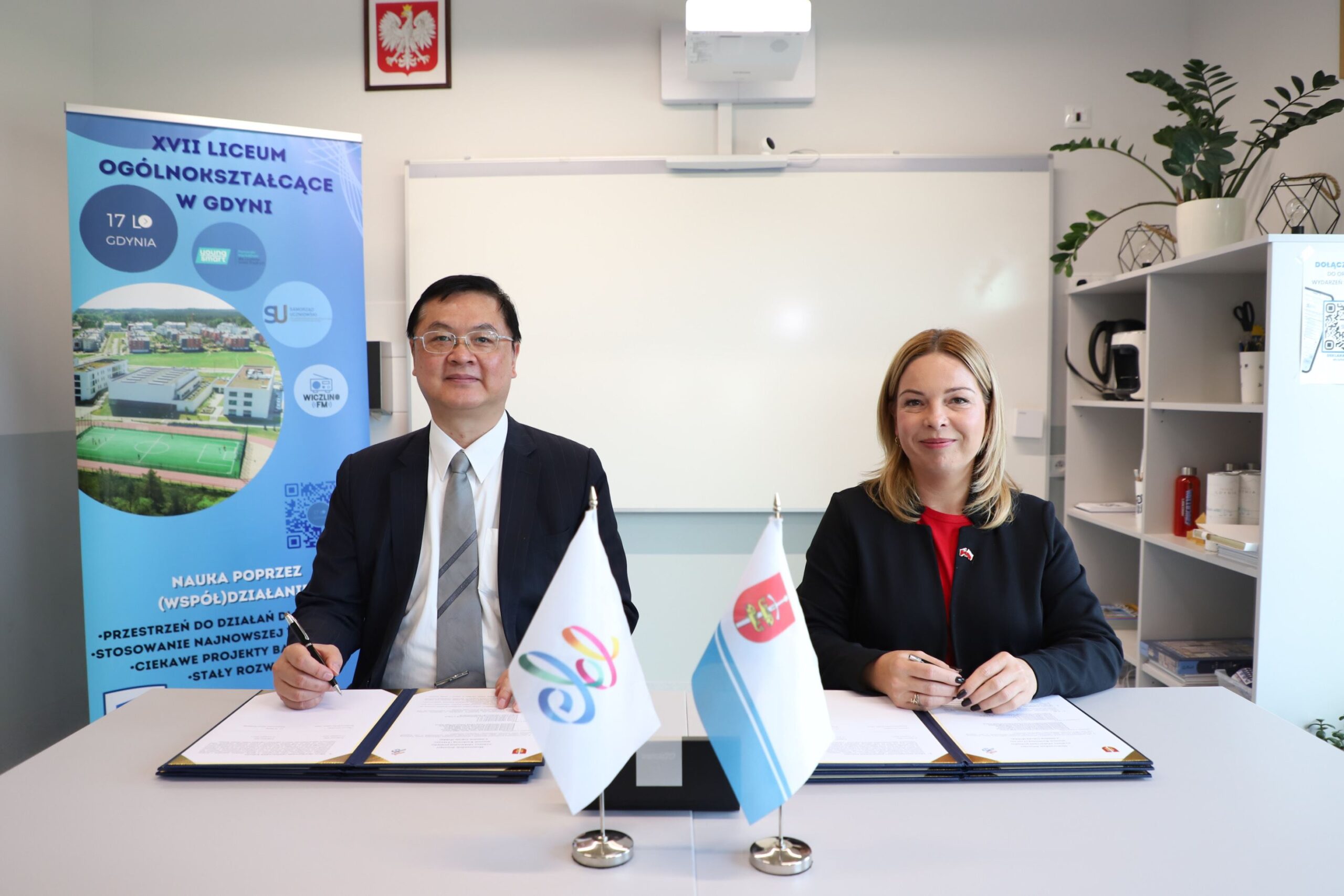 【高雄訊】高雄市副市長羅達生9月15日率領市府訪問團前往波蘭格丁尼亞第十七中學(XVII Liceum Ogólnokształcące w Gdyni)進行參訪,並與格丁尼亞市副市長Oktawia Gorzeńska共同簽署教育交流備忘錄,促成高雄市林園高中、新興高中、前鎮高中、瑞祥高中、高雄高工及中正高工,與格丁尼亞市4所普通高中及2所職業學校展開交流合作。