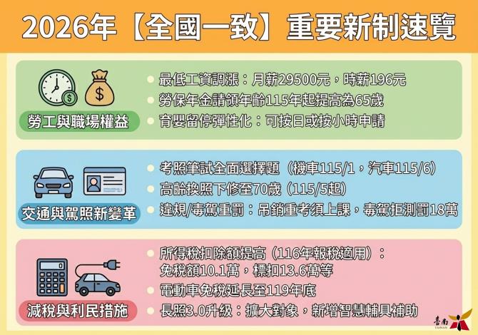 【全國一致實施之115年新制措施】