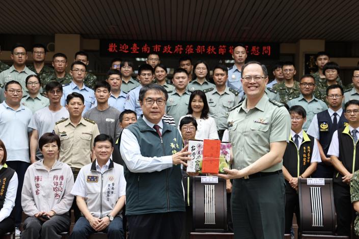 黃偉哲進一步表示,中秋象徵團圓,但國軍仍堅守崗位、默默奉獻,令人敬佩。台南市自去年起推動「敬軍月」,並逐年擴大規模,邀請在地商家響應優惠措施,以實際行動表達市民對國軍的敬意與支持。未來市府也將持續配合中央政策,強化城市韌性與地方防災能量,成為國軍最堅實的後盾。