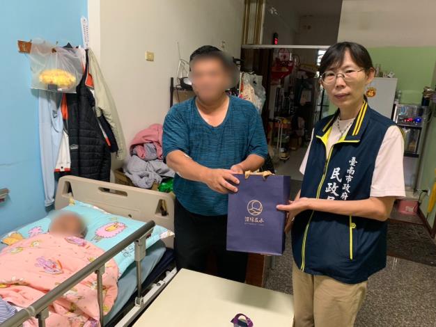 中秋節將至,市長黃偉哲為關懷本市義務役身心障礙退伍軍人,特派由民政局副局長吳明熙偕同台南市榮民服務處副處長徐麗如、安平區區長蕭泰華及替代役備役管理中心洪福龍秘書,訪視慰問安平區義務役身心障礙退伍軍人林先生,另29名袍澤弟兄由民政局派員偕同區公所同仁實地訪視慰問,除了代表市長致贈禮盒,並關懷袍澤弟兄之生活及身心狀況。