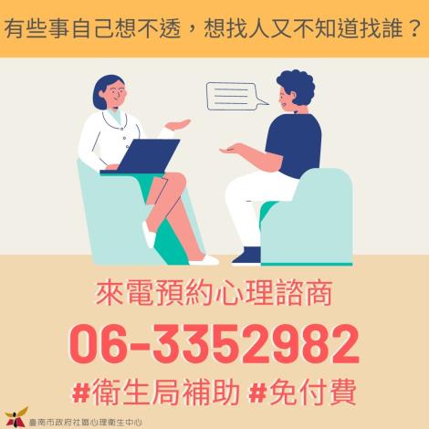 黃偉哲市長特別關心市民的身心健康:「創傷壓力反應(如創傷後壓力症候群,PTSD)可能出現在重大事故、暴力、災害或長期壓迫後,常見症狀包括反覆回憶事件、惡夢、過度警覺、情緒麻木或逃避相關情境。這些反應是身心在經歷威脅後的自然保護機制,並非「想太多」或「不夠堅強」。若症狀持續影響生活,建議尋求專業心理治療。同時,穩定作息、規律運動、與可信任的人談談,都有助於復原。創傷可以被療癒,求助是一種力量,而不是弱點!」,本市衛生局提供免費心理諮商服務,可線上或來電預約,請撥打06-3352982,將有專人為您服務。目前臺南市政府衛生局於鹽水區、北區、善化區、關廟區及安南區設立「社區心理衛生中心」,提供市民各項心理健康照護、情緒支持、精神疾病防治等多項服務,希望透過專業人員的陪伴,協助民眾找出不同以往壓力的因應方式。民眾可於上班時間撥打以下專線:鹽水區06-6521103、北區06-2510723、善化區06-5810105、關廟區06-5955525或安南區06-2550029。衛生福利部另提供24小時免付費安心專線1925(依舊愛我)。欲查詢心理健康相關資訊,請上臺南市政府衛生局網站https://health.tainan.gov.tw/ ,臺南市政府衛生局照護您的身心健康。