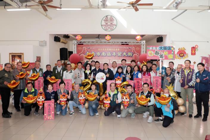 臺南市南區眷村年貨大街活動記者會今(22)日熱鬧舉行,由市長黃偉哲偕同南區區長蕭琇華、新生里里長王安國、明德里里長陳瑞華共同啟動,正式揭開南區年度重要年節活動序幕。今年由明德里辦公處辦理的「水交社文化季暨眷村年貨大街」,以及新生里辦公處接力舉辦的「臺南眷村年貨大街」,將串聯成雙場域、跨時段的年貨盛會,邀請市民一同走進眷村時光,感受過年最真摯的溫暖情懷。