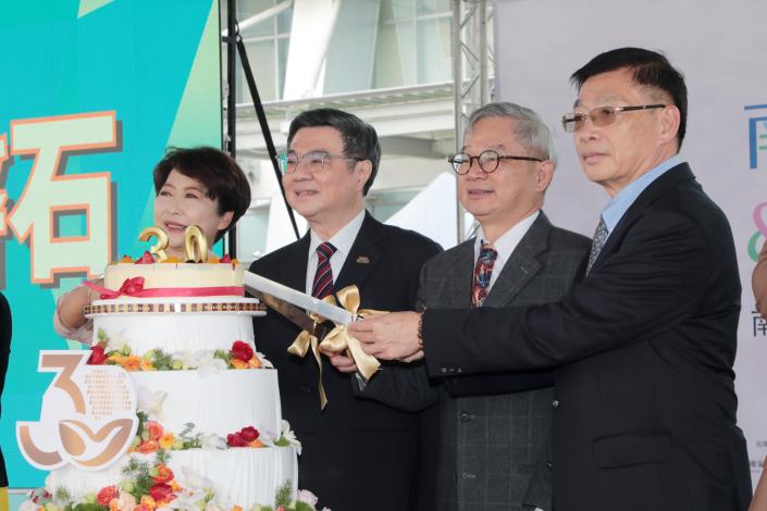 南部科學園區迎來設立30周年,今(31)日透過「南科磐石,昂首三十」園慶活動,現場展現園區產值屢創新高的成果,也特別舉辦集團結婚、藝文展演與市集體驗,呈現幸福宜居、產業與生活並進的南科風貌。