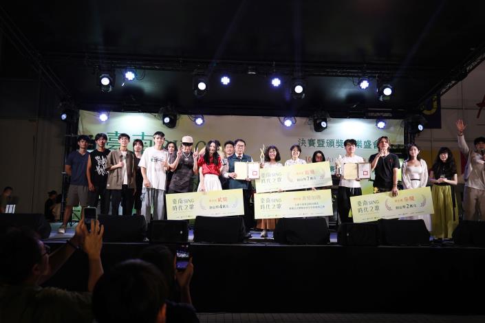 由台南市政府文化局主辦「2025台南sing時代之歌」原創音樂競賽,最終入圍的20組優秀創作者將於今明兩日(10/18-19)晚間在南紡購物中心1樓A2廣場展開決賽暨頒獎音樂盛會。台南市長黃偉哲今(18日)晚特別驚喜現身為學生組得獎者頒獎。