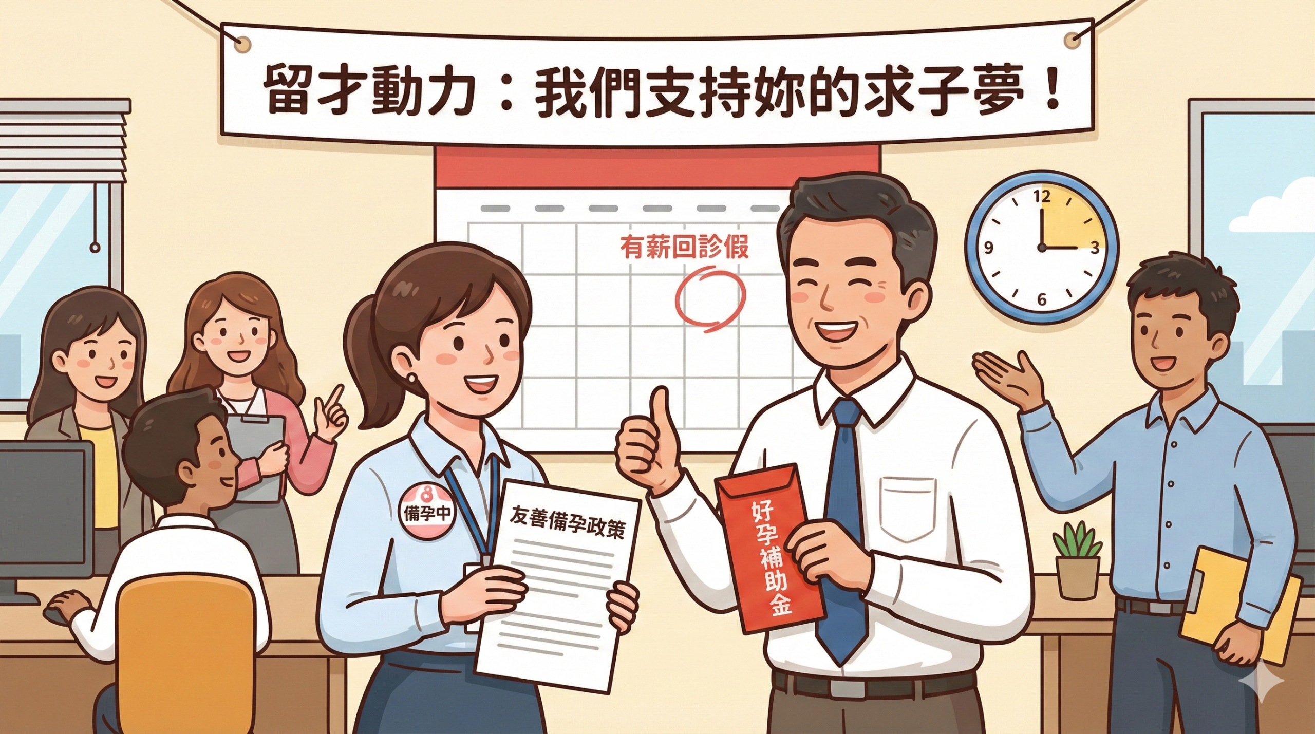試管補助 3.0 即將上路,政府將不孕症治療視為國安問題。然而,對於南台灣的中小企業主而言,員工備孕、甚至進行試管療程,常被視為「請假頻繁、產值下降」的管理難題。在缺工嚴重的當下,若企業能反其道而行,主動提供「友善備孕」的支持,這不僅是企業社會責任(CSR),更是將員工的「求子焦慮」轉化為「深度忠誠」與「留才動力」的絕佳契機。