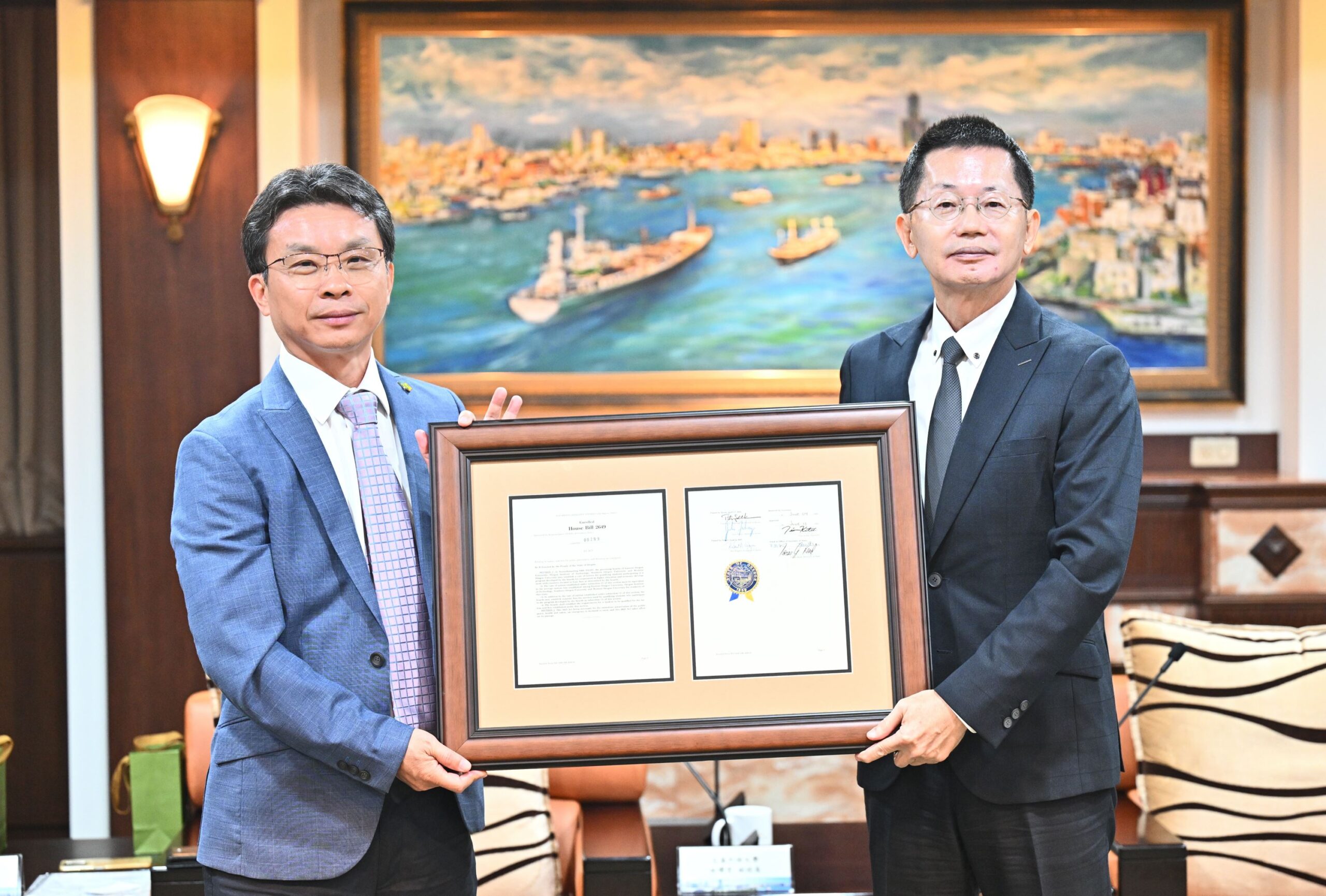 分享國際高教交流進展,文藻外語大學林耀堂副校長代表校方轉交由奧勒岡州眾議員保羅・伊凡斯(Paul Evans)推動並通過之 House Bill 2649(HB 2649) 法案紀念牌予高雄市政府。該法案通過後,台灣學生可依規定以「州內學生學費」(in-state tuition)身分,就讀東奧勒岡大學(Eastern Oregon University)、奧勒岡理工大學(Oregon Institute of Technology)、南奧勒岡大學(Southern Oregon University)及西奧勒岡大學(Western Oregon University),鼓勵台灣青年赴美求學。