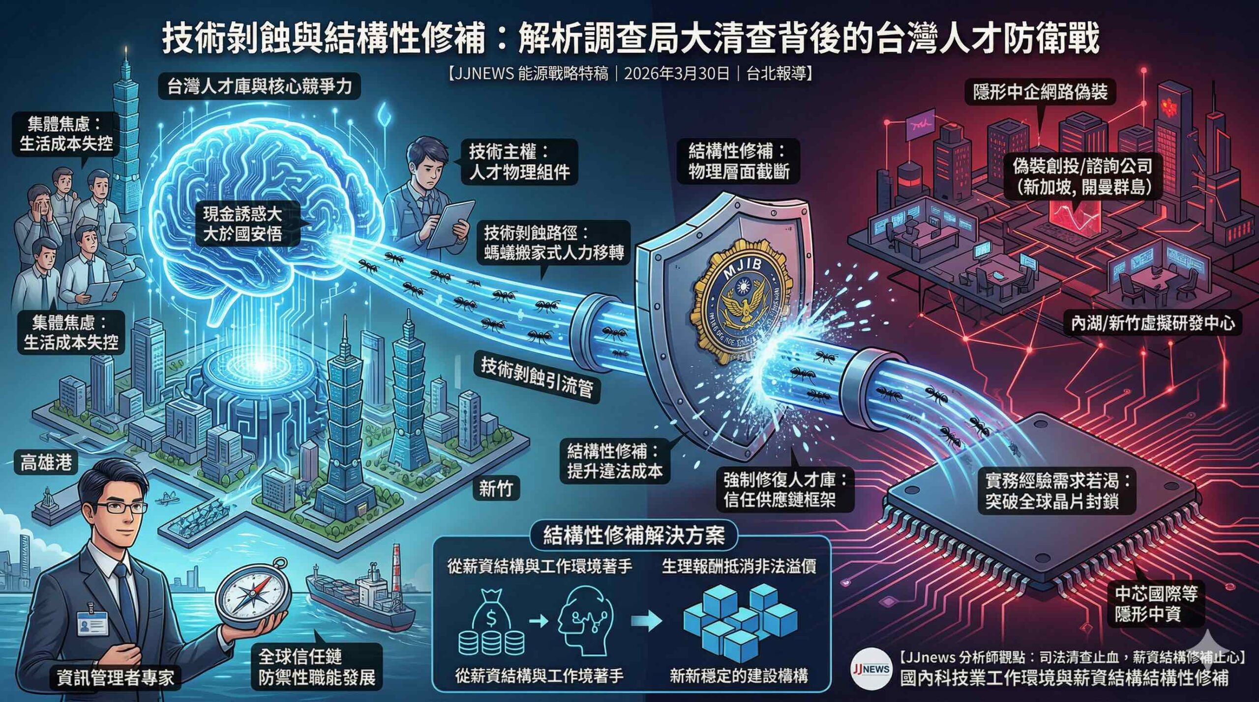 這場突擊行動也反映了台灣對人才管理的邏輯發生根本性位移,正式終止了人才自由流動的浪漫幻想。在 2026 年建立的信任供應鏈框架下,台灣必須向全球合作夥伴證明其具備防止技術流向非友岸國家的能力。透過大幅提高違法成本,政府正強制修復人才庫,讓原本意圖透過非法架構進行職涯套利的受僱者,必須重新評估其對價關係。這種防禦性修補雖然手段冷酷,卻是維持台灣技術穩定度的必要補丁。