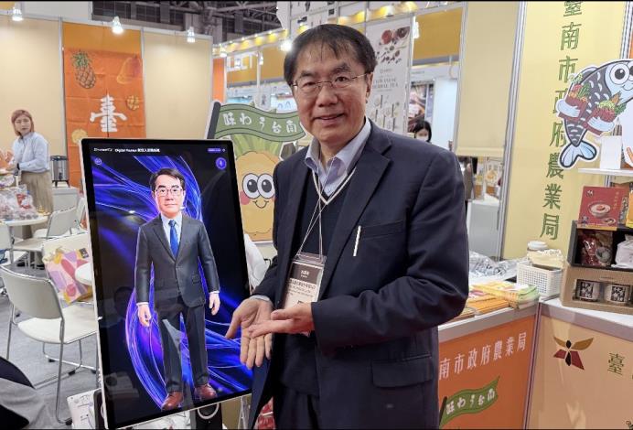 台南市長黃偉哲今年再度率隊進軍東京食品展,邀集台南14家農特產品業者組成歷年最大的展區,向日本通路市場招手。有鑒往年買家來訪眾多,現場接待人力應接不暇,今年特別設置黃偉哲市長的AI分身,可用日、英、韓、中四種語言,向訪客介紹台南農產特色。