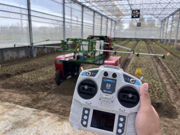 李芳林局長說明丹娜絲颱風造成嘉南等地農業損失慘重,尤其以溫網室設施毀損最為嚴重,截至目前農業局已輔導本轄農友申辦溫網室設施重建201件,面積為42.59公頃,感謝農業部農糧署提高設施補助額度至8成,減少農友負擔可以儘速復建重新投入生產。面對極端型氣候的挑戰,本次災後許多農友也陸續轉型為結構型溫網室設施,除了更為穩固也符合農業生產的需求。特別感謝臺南區農業改良場團隊,輔導本專區建置一貫化自動化農機生產設備,包含自動化育苗生產線、機械化整地整型設備、蔬菜移植機及遙控噴藥機等,從育苗至栽培管理之田間作業過程,減少農業所需勞動力,提升生產效能。