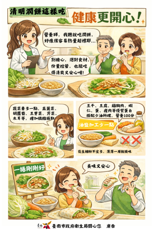清明節是慎終追遠、家人團聚的時刻,潤餅不只是食物,更是一種情感連結。今年不妨試著「聰明包、安心吃」,讓傳統美味也能成為守護健康的好幫手,吃得滿足,也吃得無負擔。