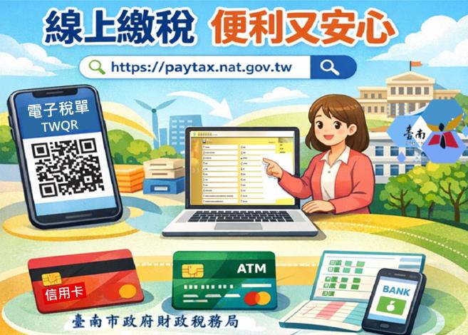 臺南市政府財政稅務局表示,隨著行動支付與電子金融服務日益普及,為減少這些困擾,民眾只要申請電子稅單,在繳稅期間,稅單將主動寄送到指定的電子信箱,只要點擊電子稅單上QR-Code專區的TWQR,可直接連結網路繳稅服務網站,自動帶入繳稅資料,再選擇信用卡、晶片金融卡或活期(儲蓄)存款帳戶等支付工具,不用30秒就可以輕鬆完成繳稅。