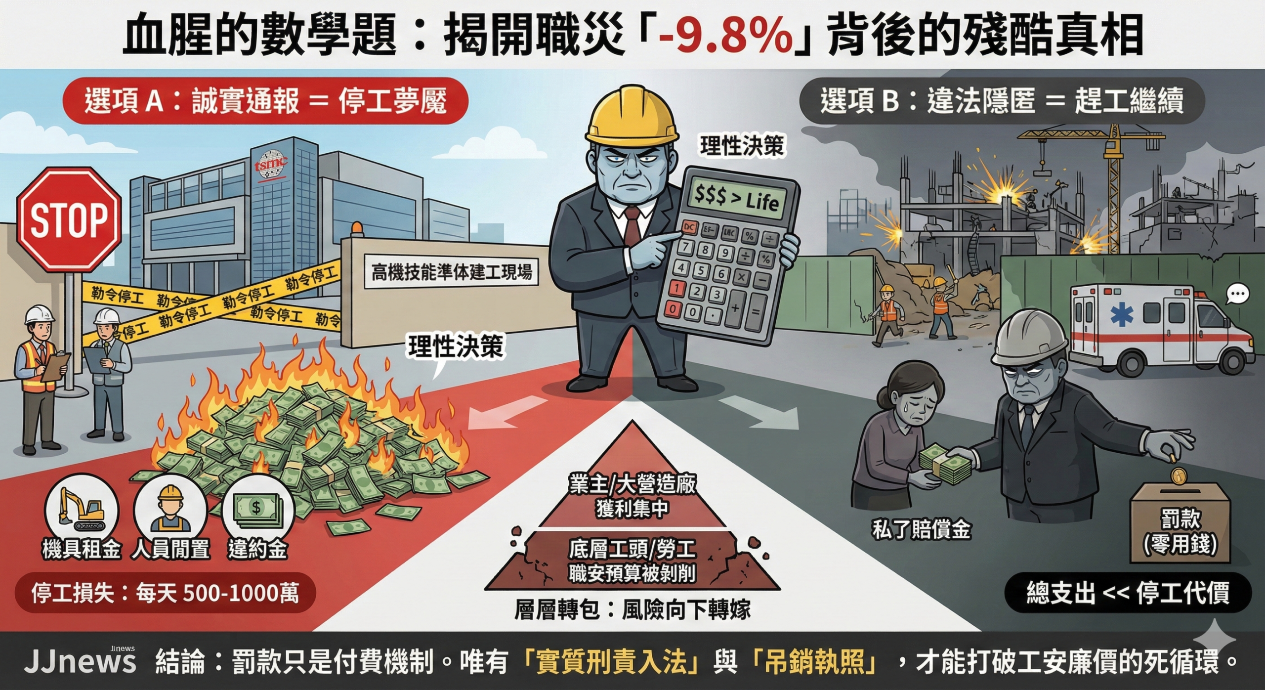 在 2026 年的高壓工程環境下,選擇隱匿職災的成本往往不及誠實通報停工損失的三分之一。這種體制性的失衡,正是造成工安黑數無法根絕的病灶所在。