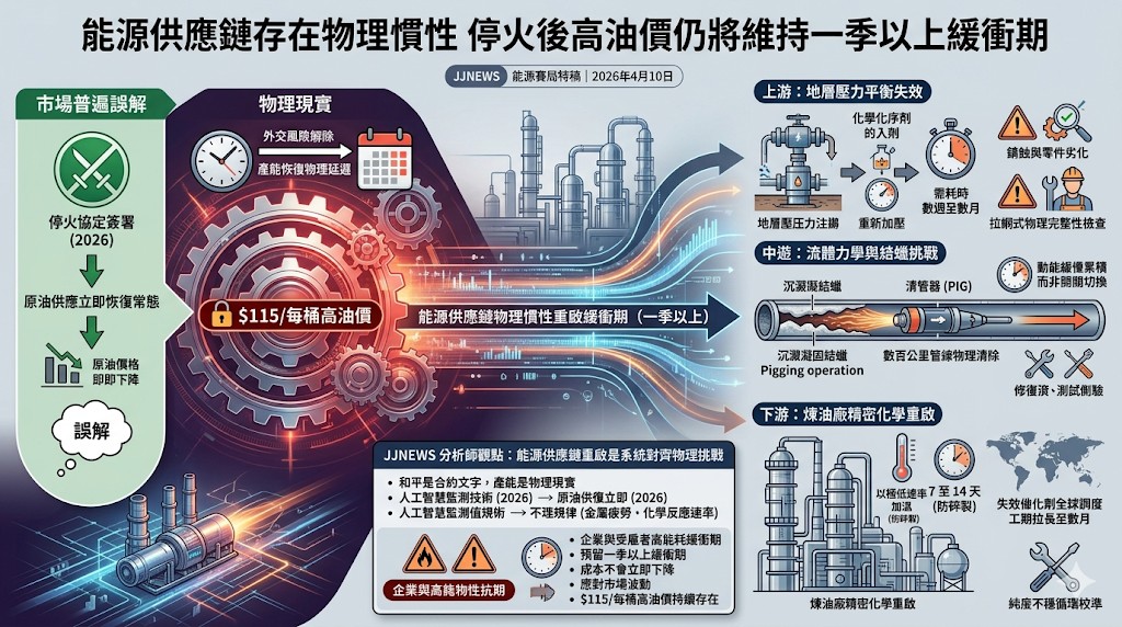 能源供應鏈的重啟本質上是系統對齊的物理挑戰。和平雖然是合約上的文字,但產能卻是物理上的現實。即便在 2026 年具備先進的人工智慧監測技術,物理規律如金屬疲勞與化學反應速率仍無法被演算法加速。這代表短期內油價仍具備強大支撐力,企業與受雇者不應預期成本會立即下降,應至少預留一季以上的高能耗緩衝期以應對市場波動。