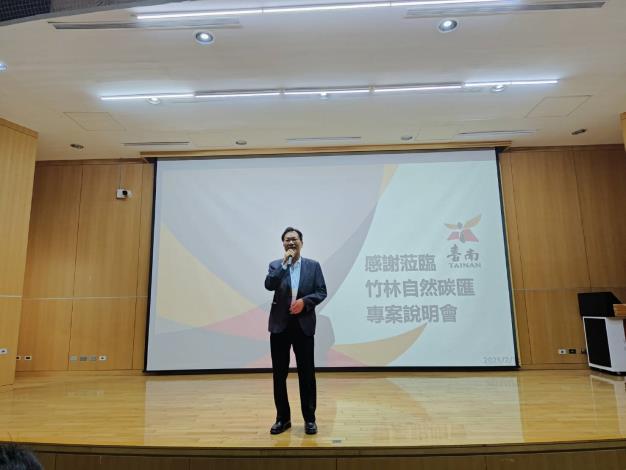 市長黃偉哲表示自然碳匯方法學的建立具有高度技術門檻,需以更精確且科學的方式建構減碳模式,這也反映出國內科技產業近年在製程減碳 上的累積成果,進而有能力跨足自然碳匯領域,對我國自然碳匯技術發展具有指標性意義。黃市長強調,在全球氣候變遷與國際淨零趨勢持續推進 下,盼透過本次說明會,邀請更多企業加入自然碳匯行列,攜手為永續未來努力。