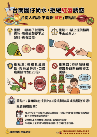 衛生局呼籲切勿落入加味檳榔陷阱,守護兒少遠離口腔癌