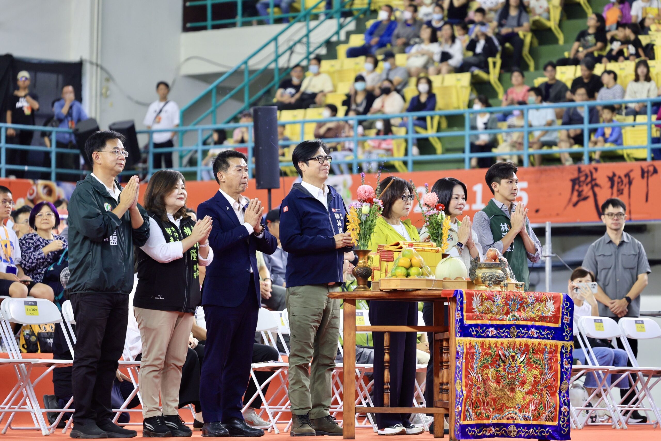 「2025高雄戲獅甲」水陸雙主場正式回歸,首場賽事於今日中午在高雄市立國際游泳池展開水上跳樁競技。陳其邁市長親臨出席祈福儀式,市議會議長康裕成也到場參與,依循傳統儀節進行祭天祈福。陳其邁祈求活動順利、市民平安健康,隨後在選手與裁判宣誓後,熱血的水樁獅王爭霸正式登場,帶來視覺與聽覺的震撼表演。