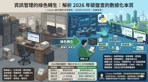 在 2026 年的淨零轉型浪潮中,產業界最深刻的體悟是:碳盤查(Carbon Footprinting)本質上不是一場單純的環境運動,而是一場大規模的資訊管理工程。過去被視為傳統辦公室職能的資訊管理(IM),正在經歷一場綠色轉生。當企業的每一度電、每一升油、每一公斤原料都必須被精確轉化為 CO2e 時,具備數據架構思維與自動化處理能力的資管人才,正式接管了企業的碳帳本。